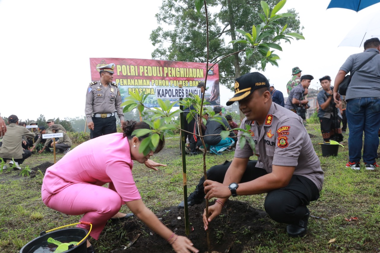 Bibit pohon yang ditanam diataranya pohom Mahoni, Cempaka, Durian, Jeruk, Albesia, Mangga, Gaharu, Sawo, Belimbing, Naka dan jenis pohon lainnya. Orang nomor satu di Polres Bangli ini mengatakan kegiatan Polri Peduli Penghijauan ini dilaksanakan secara serentak di seluruh jajaran Polda Bali dan di lakukan di asrama maupun kantor kantor Polres maupun Polsek.