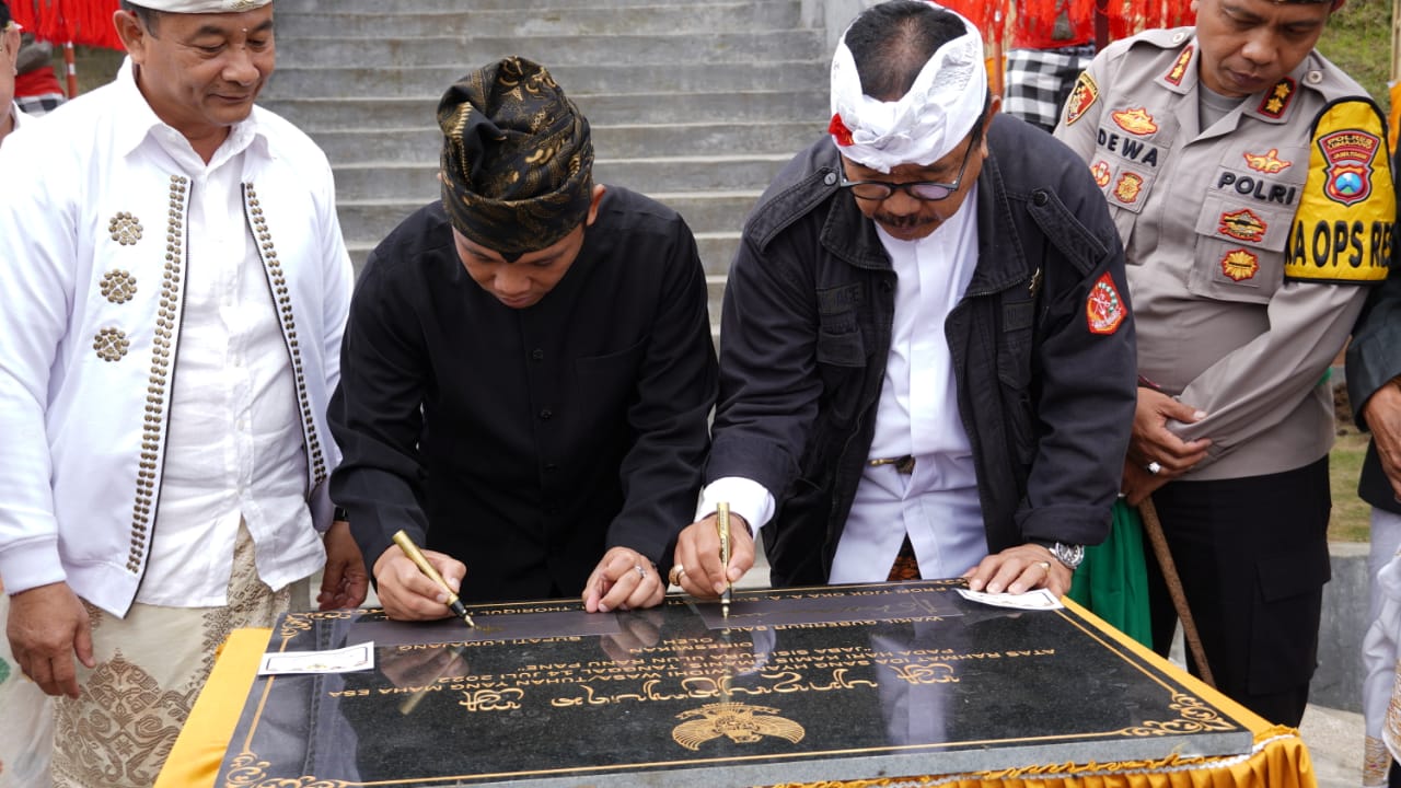 Wagub Bali Cok Ace dan Bupati Lumajang H. Thoriqul Haq Tandatangani Prasasti Pura Ulun Ranu Pane Lumajang