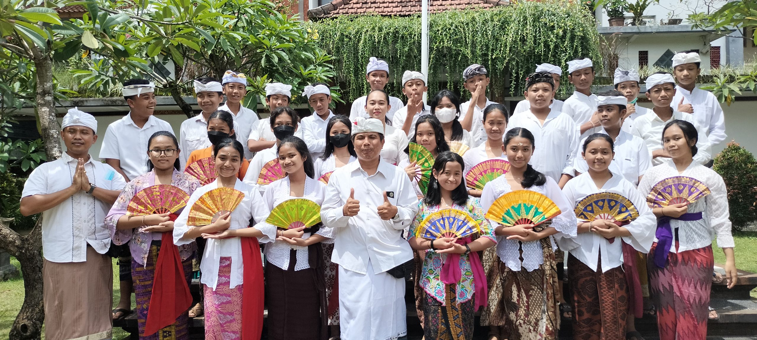 Foto : Kepala SMP Dwijendra, Guru tari dan siswa