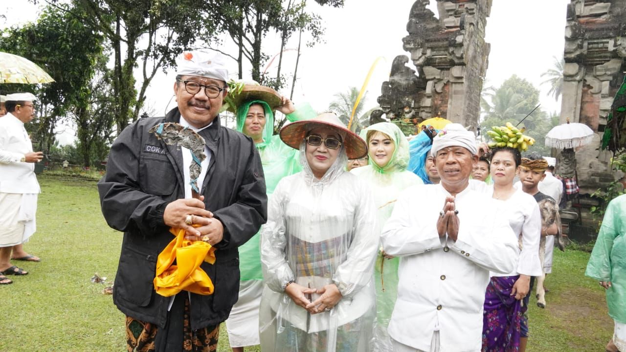 Wakil Gubernur Bali Prof. Tjok. Oka Artha Ardhana Sukawati yang didampingi oleh Ketua PHDI Jawa Timur, Pembimas Jawa Timur, Ketua DDP Pradah Jawa Timur dan PHDI Lumajang turut menyaksikan prosesi mapepada wewalungan yang dipuput oleh Ida Pedanda Gunung Sari, serangkaian karya pujawali di pura Mandara Giri Semeru Agung, Kecamatan Senduro, Kabupaten Lumajang, Jawa Timur, Minggu , Redite, Wuku Wariga, 2 Juli 2023.
