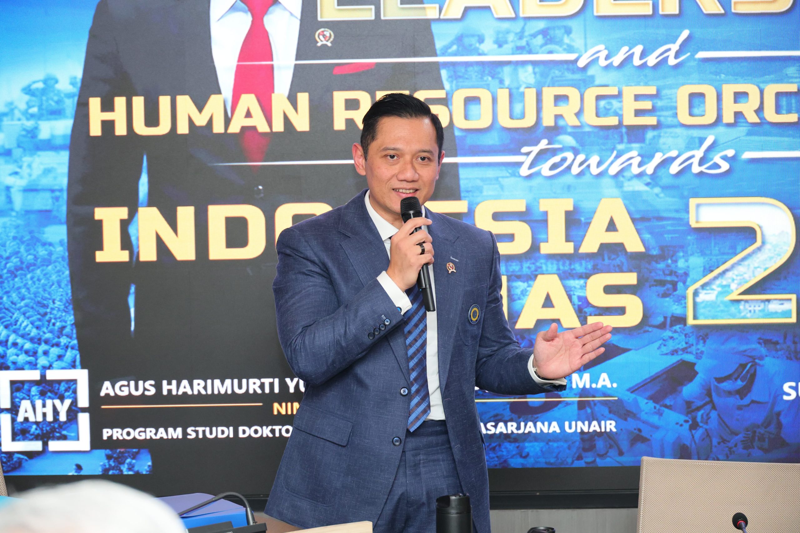Menteri Agraria dan Tata Ruang/Kepala Badan Pertanahan Nasional (ATR/BPN), Agus Harimurti Yudhoyono (AHY) berhasil mempertahankan disertasinya di hadapan para penguji pada sidang program doktoralnya di Universitas Airlangga, Kamis (12/09/2024).