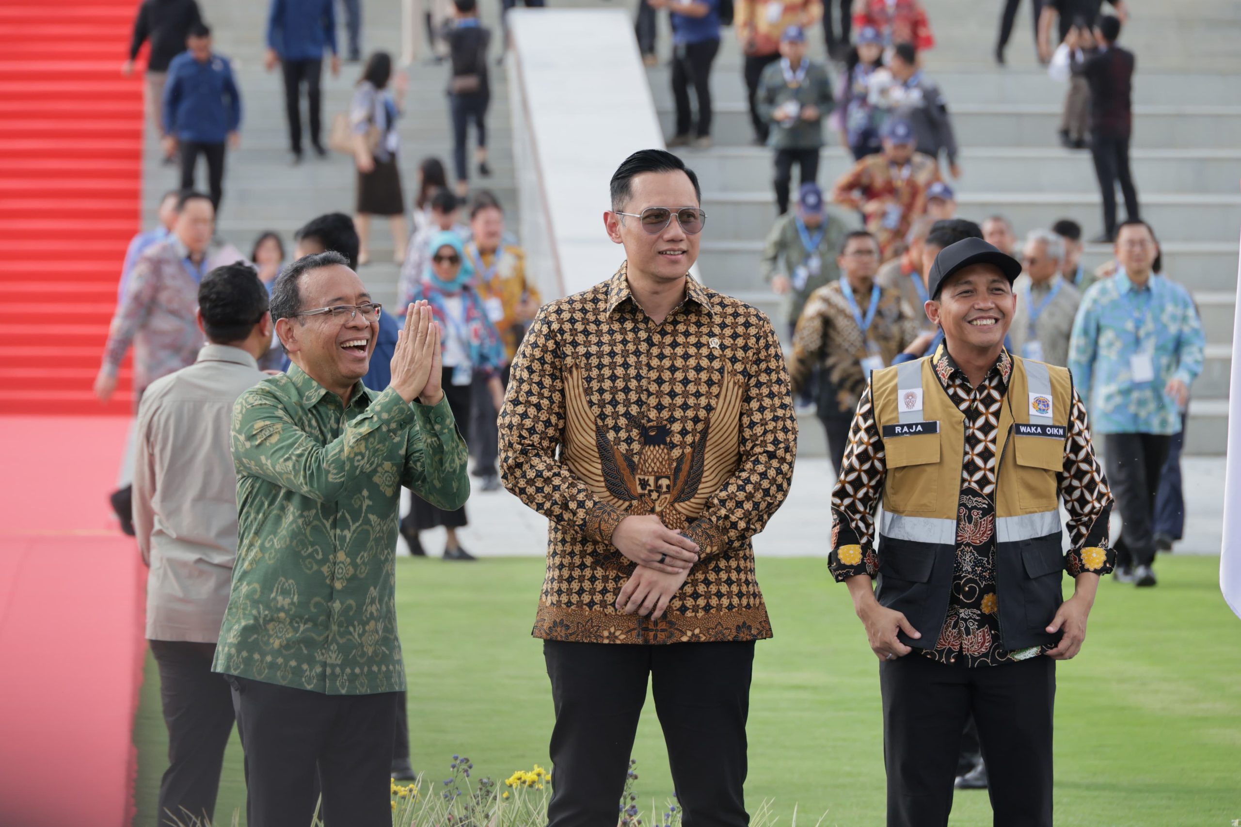 Menteri Agraria dan Tata Ruang/Kepala Badan Pertanahan Nasional (ATR/BPN), Agus Harimurti Yudhoyono (AHY) mendampingi Presiden Joko Widodo dalam Peresmian Istana Negara di Ibu Kota Nusantara (IKN), Provinsi Kalimantan Timur, Jumat (11/10/2024). Dalam kesempatan ini, Menteri AHY menyerahkan Sertipikat Tanah Elektronik berupa Hak Pakai untuk Istana Negara dan Istana Garuda kepada Menteri Sekretaris Negara, Pratikno di hadapan Presiden Joko Widodo.
