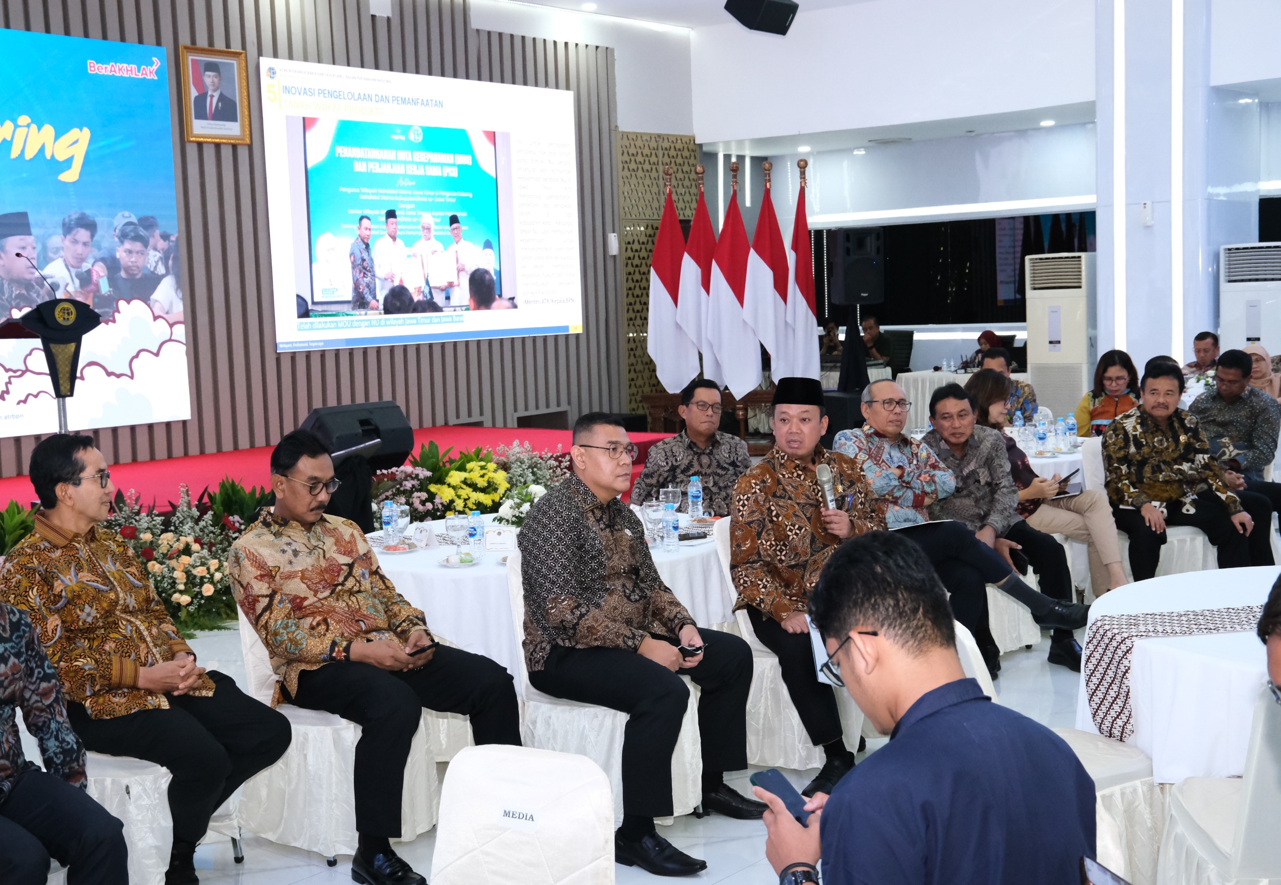 Hadir pada kegiatan ini, Wakil Menteri ATR/Wakil Kepala BPN, Ossy Dermawan; sejumlah Pejabat Pimpinan Tinggi Madya dan Pratama Kementerian ATR/BPN; serta sejumlah wartawan dari berbagai media nasional. (RED/TN/JM/PHAL)