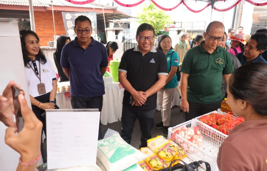 Sekretaris Daerah Kota Denpasar, Ida Bagus Alit Wiradana hadir langsung meninjau langsung jalannya Bazar Pangan ini.