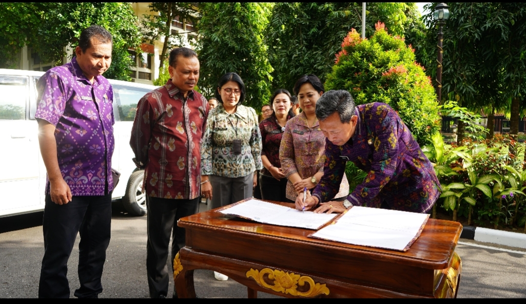Serah terima kendaraan ditandai dengan penandatanganan berita acara oleh Ketua Suka Duka ASN Pemprov Bali, I Wayan Serinah, dan Kepala Dinsos P3A Provinsi Bali, A.A. Sagung Mas Dwipayani. Penandatanganan ini disaksikan langsung oleh Sekda Dewa Indra dan Inspektur Daerah Provinsi Bali, I Wayan Sugiada.
