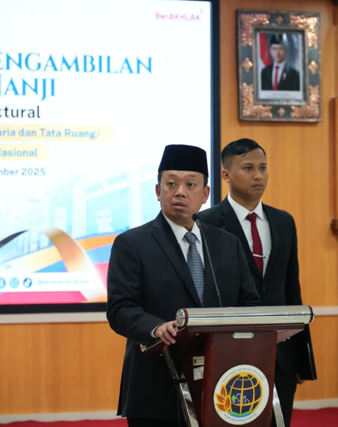 Menteri Agraria dan Tata Ruang/Kepala Badan Pertanahan Nasional (ATR/BPN), Nusron Wahid, melantik 24 Pejabat Struktural di lingkungan Kementerian ATR/BPN, Jumat (12/09/2025). Para pejabat terlantik diingatkan oleh Menteri Nusron untuk menjalani tugas melayani dengan hati dan mendedikasikan diri kepada masyarakat.