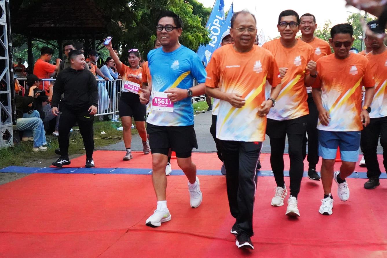 Gubernur Bali, Wayan Koster, didampingi Wakil Wali Kota Denpasar, I Kadek Agus Arya Wibawa, Wali Kota Banjarmasin, H. M. Yamin HR, serta sejumlah pejabat Kota Denpasar, mengikuti lari maraton dalam rangkaian Sanur Bali International Half Marathon 2026 di Pantai Mertasari, Sanur, Denpasar, Minggu (8/2).
