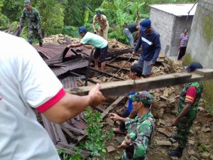 Aksi Cepat Koramil Sukasada Gotong Royong Rumah Nenek Santri yang Roboh Pasca Hujan Angin
