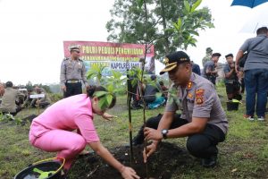 TARGETNUSA.COM, Bangli || Kapolres Bagli AKBP I Gusti Agung Dhana Aryawan, S.I.K.,M.I.K., bersama jajarannya gelar penanaman 1999 bibit pohon secara serentak dalam