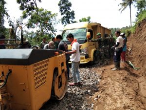 Untuk Perceparan Pengerasan Jalan Sepanjang 1500 Meter Satgas TMMD Datangkan Alat Berat