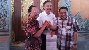 TARGETNUSA.CIM, Denpasar, Bali || Deputi Infrastruktur Kemenko Maritim Ridwan Djamaluddin memberikan pernyataan dihadapan awak media didampingi Gubernur Bali Wayan Koster dan Dirut