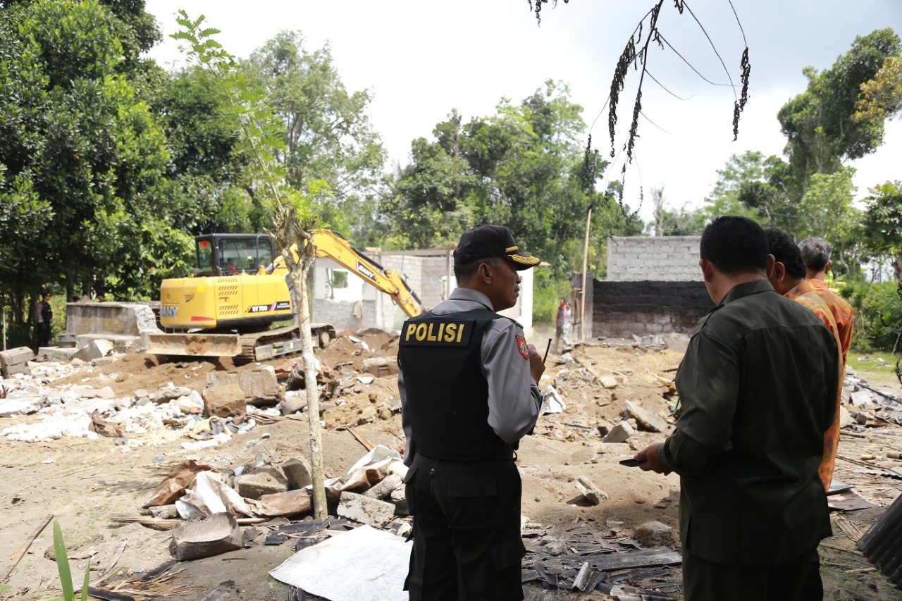 Lanjut Kabag Ops menyampaikan setelah hasil putusan sidang para pihak tergugat telah secara suka rela membongkar bangunan masing-masing baik Merajan atau sanggah dan atap-atap rumah mereka sehingga tinggal hanya tembok bangunan yang tersisa, namun dirinya menekankan tetap melakukan pangamanan.