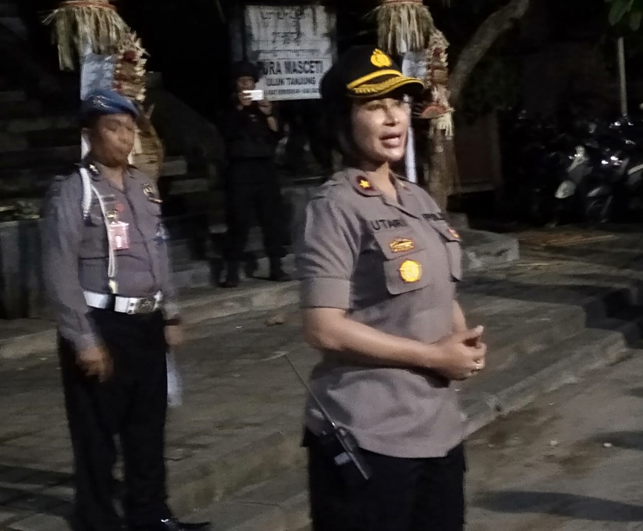 Pantauan humas Polres Badung di tempat wisata Petitenget, Kuta Utara, pada hari Sabtu (14/03) malam pukul 22.00 Wita, puluhan anggota polisi yang tergabung dalam patroli penebalan tengah konsentrasi berjaga.