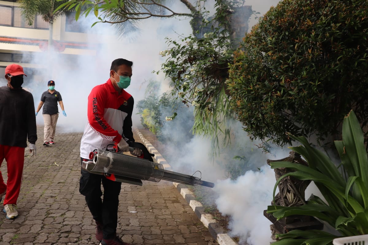 Polres Tabanan bekerjasama dengan Tim Fogging Rumah Sakit Bhakti Rahayu Pusat Denpasar, melibatkan Tim Fogging dari Rumah Sakit Bhakti Rahayu Cabang Tabanan dibantu Tim Kesehatan Clinik Polres Tabanan, menurunkan 3 Unit Fogging, melakukan penyemprotan menyasar semua ruang kerja di masing – masing Bag, Sat dan Si, di Sentra Pelayanan (SKCK, SIM, SPKT), di Area Uji Praktek SIM, lingkungan kantor utama Polres Tabanan termasuk ruang tahanan dan di lingkungan asrama.
