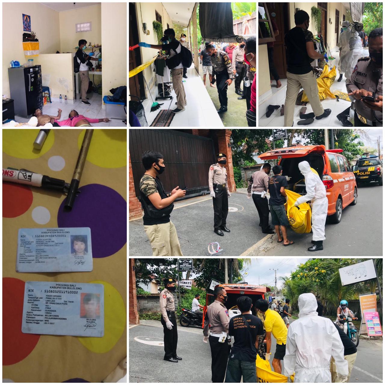 “Saat diangkat dan dibaringkan adiknya sudah meninggal dunia,” ujar Putu Mertayasa. “Kami masih selidiki meninggalnya sepasang kekasih ini sesuai cairan yang ditemukan di TKP,” tegas Kompol. Marzel Doni, S.I.K., M.H.