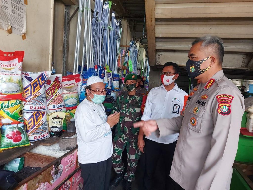 Guna mendukung kebijakan Presiden, Kapolda Metro Jaya memerintahkan Dirbinmas Polda Metro Jaya yang di pimpin oleh KBP Badya Wijaya SH,.MH melaksanakan giat pemantauan di Pasar Jaya Bendungan Hilir Jakarta Pusat dan Pasar Jaya Warung Buncit, Jakarta Selatan.