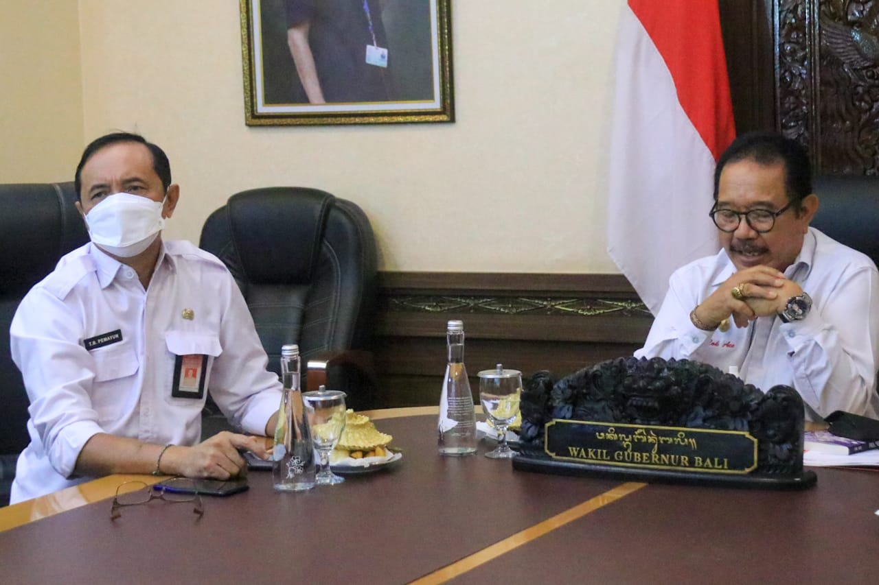 Menyampaikan paparan dari ruang kerjanya di Kantor Wakil Gubernur, Wagub Cok Ace yang didampingi Plt. Kepala Dinas Pariwisata Provinsi Bali Tjok. Bagus Pemayun menyampaikan bahwa aturan hukum dan kearifan lokal berada dalam dua kutub yang berbeda.