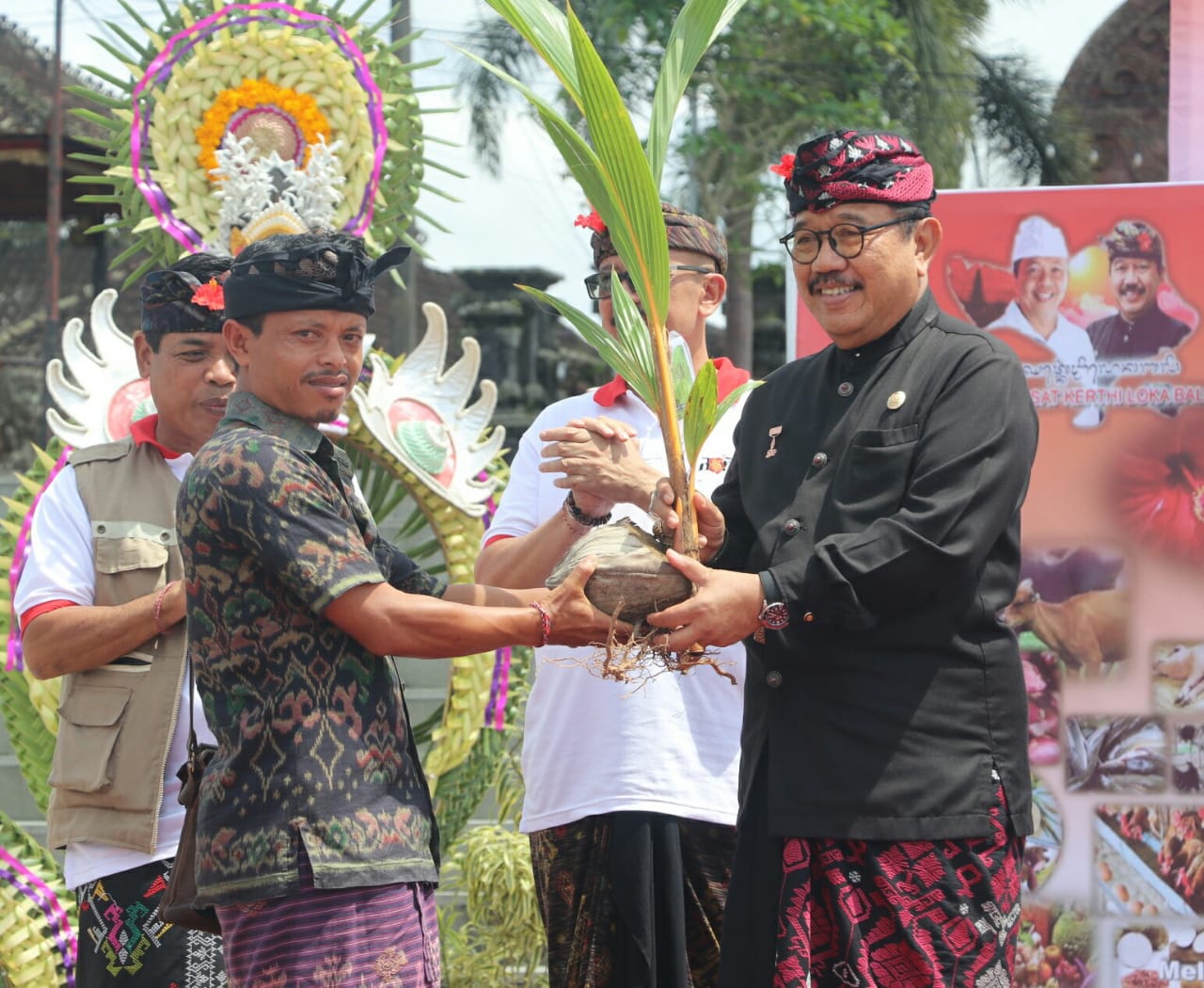 Puncak peringatan HPS Tahun 2022 juga ditandai dengan penyerahan bibit pohon kelapa oleh Wagub Cok Ace kepada perwakilan warga.