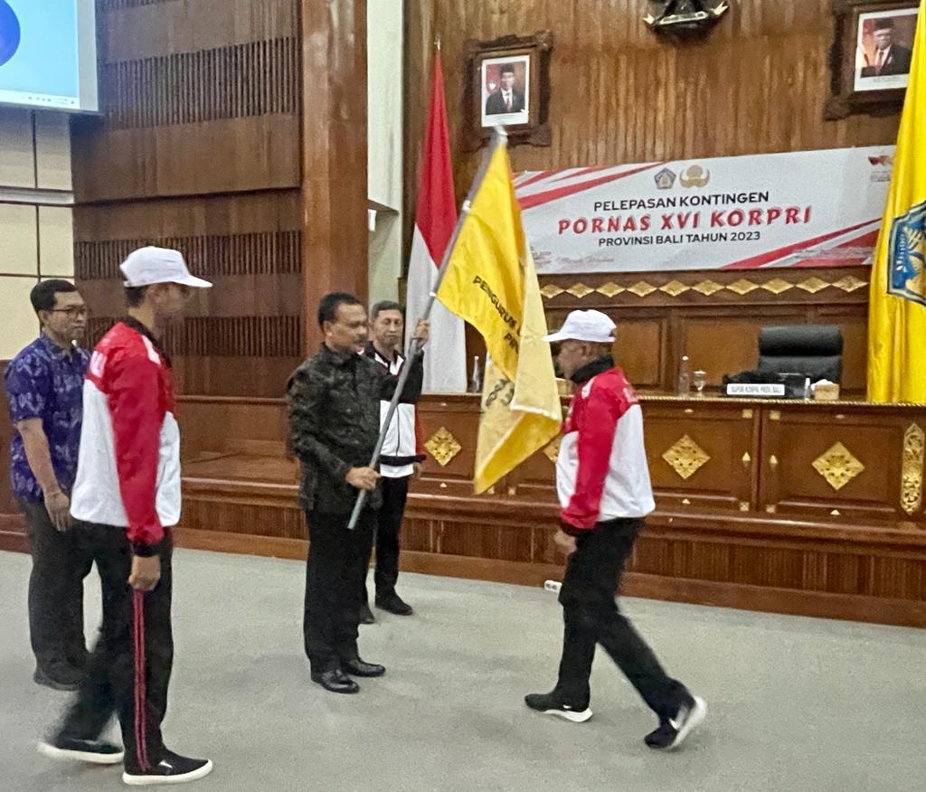 Sekretaris Daerah Provinsi Bali Dewa Made Indra melepas 161 atlet dan ofisial Korps Pegawai Republik Indonesia (KORPRI) Bali yang akan berlaga di ajang Pekan Olahraga Nasional (PORNAS) KORPRI XVI Tahun 2023 di Semarang, Jawa Tengah.