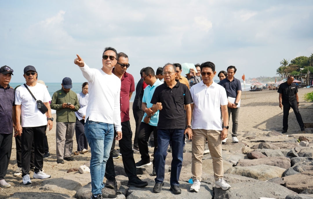 Gubernur Bali Wayan Koster dan Bupati Badung Adi Arnawa beserta jajaran melakukan inspeksi mendadak (sidak) ke usaha pariwisata di Pantai Berawa Desa Tibubeneng Kuta Utara Badung, Minggu 10 Agustus 2025.