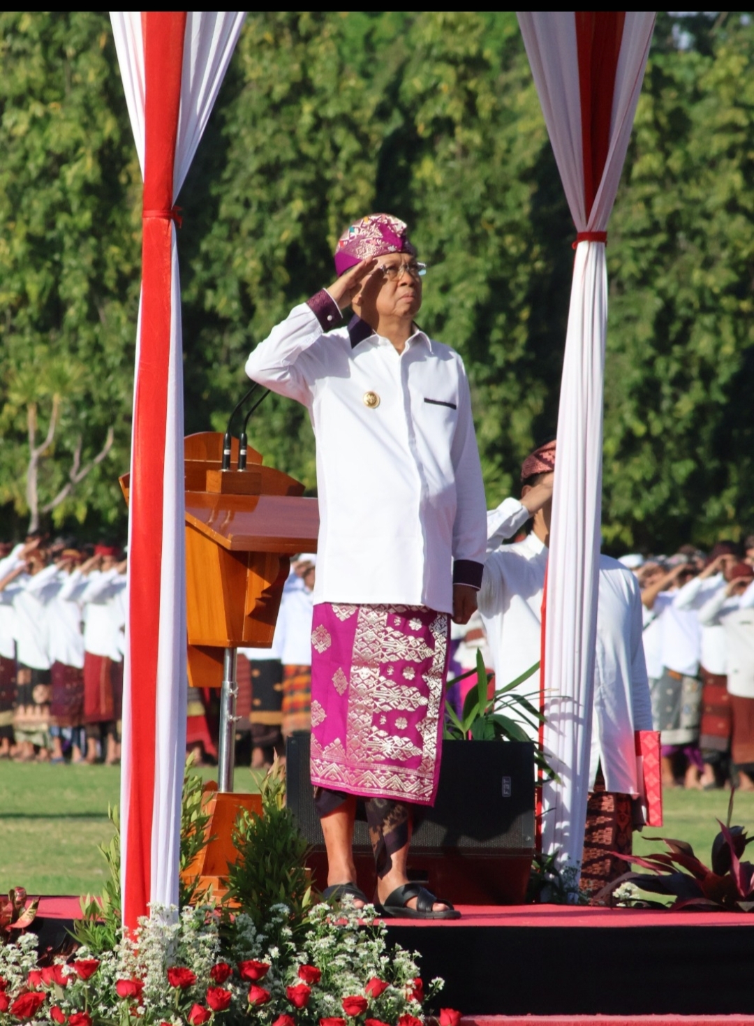 Sebelum peluncuran, Gubernur Koster juga berkesempatan memimpin secara langsung Upacara Bendera HUT ke-67 Provinsi Bali.